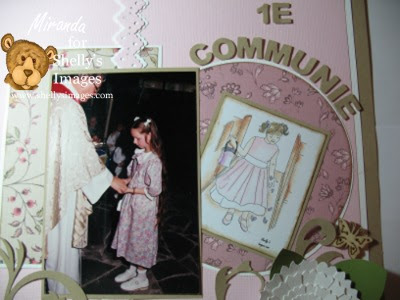 The new challenge has started at Shelly's Images. This time it is a TTT Challenge and the theme is "Anything goes" The team has worked with the digi of their own choice and I've chosen for Flower girl. I wanted to combine a layout with a digi. I've made a layout with a picture when I was a little girl and received my Holy Communion. The paper is from V&A (Hanoverian). The border is made with a die from XCut.