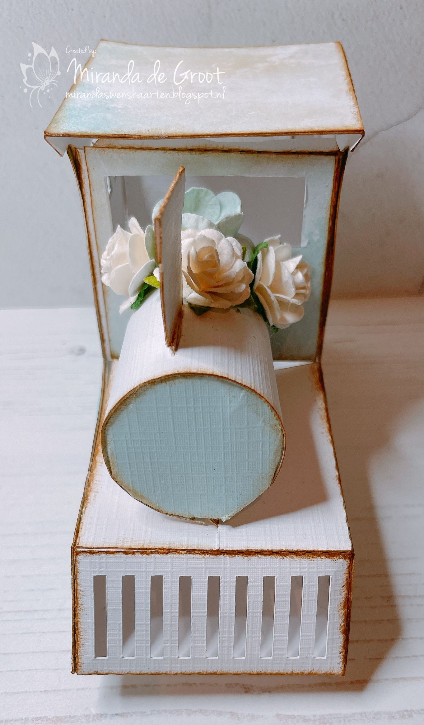 Vandaag is er een collega met zwangerschapsverlof gegaan. We hebben haar een mooie mand met cadeautjes gegeven en ook een cadeaubon. Om de bon wat leuker te geven heb daar ik voor iets gemaakt. Omdat we weten dat ze een jongetje verwacht, heb ik een blauw treintje gemaakt met mijn Silhouette. Het is een kooppatroon uit de Silhouette Design Store #34372.